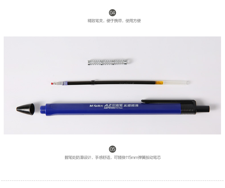 商品名称:晨光ABPW3002,中油笔/按动圆珠笔/陶瓷笔头原子笔 0.7mm 商品编号:61.03.03.3002 品牌:晨光/M&G 上架时间:2017-08-07 商品毛重:0克 价格单位:支 笔头类型:子弹头 笔头粗细:0.7mm 包装含量:1/40/1920 如果您发现商品信息不准确,欢迎纠错;如果您发现有比51文具价格更低的,欢迎举报