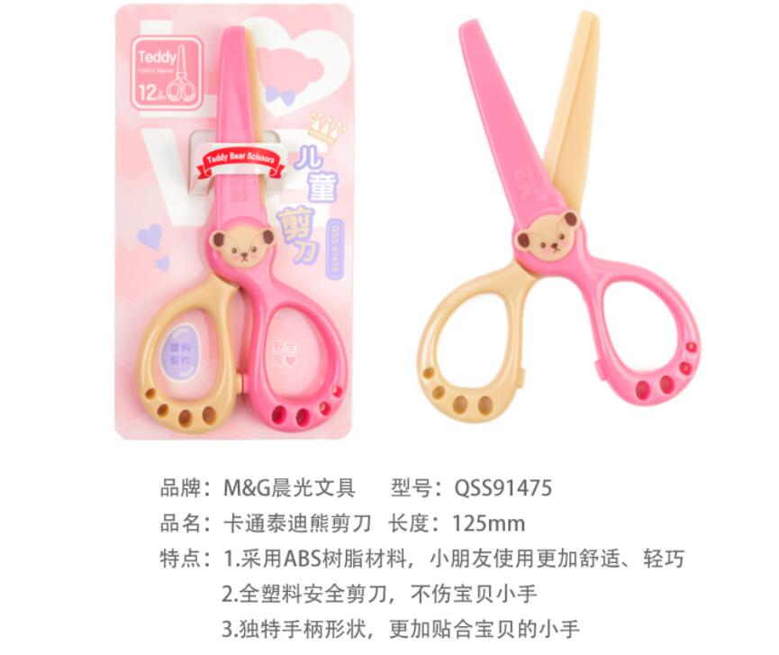 商品名称:晨光QSS91475, 泰迪熊127mm塑料剪刀/手工剪刀/学生剪刀/儿童剪刀安全,不伤手 商品编号:61.02.04.91475 品牌:晨光/M&G 上架时间:2017-08-07 商品毛重:0克 如果您发现商品信息不准确,欢迎纠错;如果您发现有比51文具价格更低的,欢迎举报
