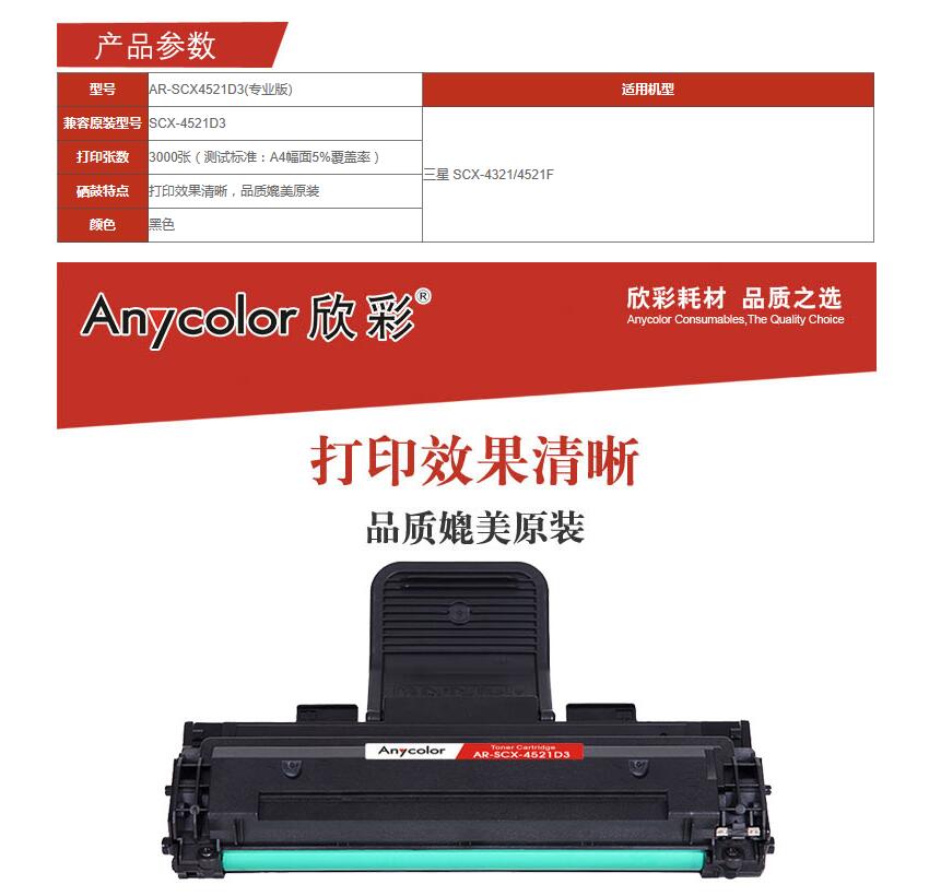 商品名称:欣彩AR-SCX4521D3,(专业版)黑色硒鼓适用三星SCX-4521D3 ,三星SCX-4321 黑色 商品编号:ECS007826 品牌:欣彩/Anycolor 上架时间:2017-08-27 商品毛重:0克 如果您发现商品信息不准确,欢迎纠错;如果您发现有比51文具价格更低的,欢迎举报