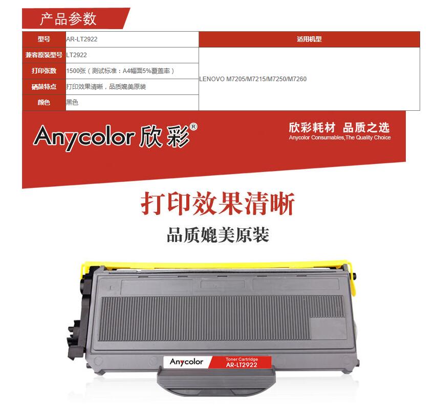 商品名称:欣彩AR-LT2922,黑色硒鼓联想LT2922,LENOVO LT2922 ,联想M7205/M7215 黑色 商品编号:ECS007852 品牌:欣彩/Anycolor 上架时间:2017-08-27 商品毛重:0克 如果您发现商品信息不准确,欢迎纠错;如果您发现有比51文具价格更低的,欢迎举报