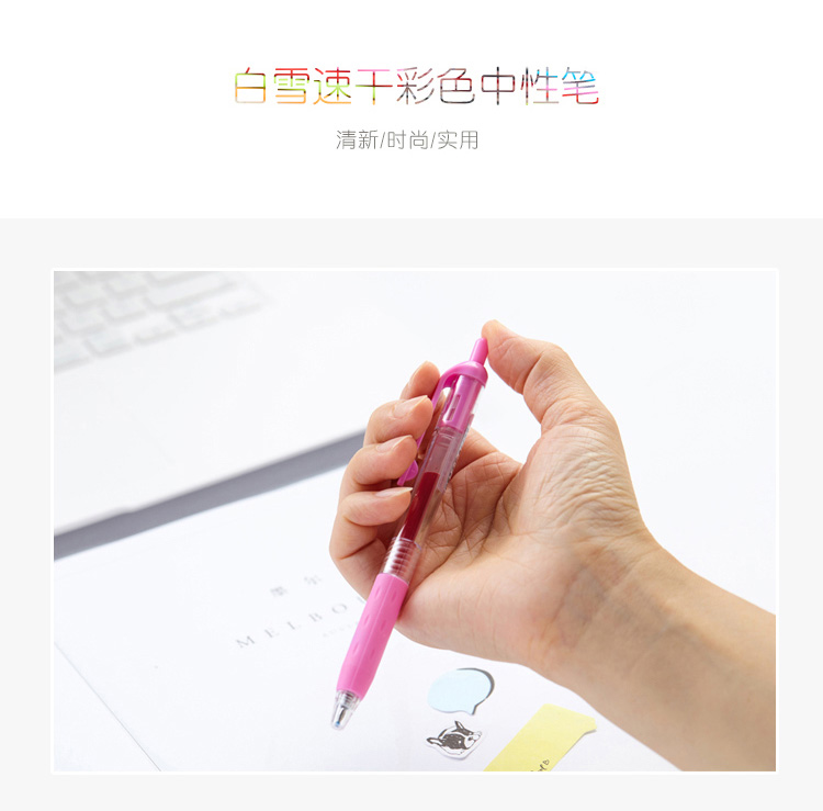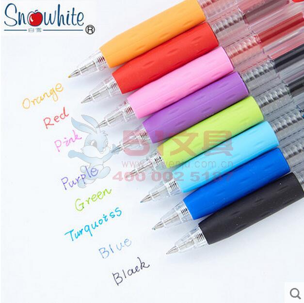 商品名称:白雪G101,0.5mm糖果彩色速干中性笔,手帐笔/小清新中性笔/多彩签字笔 商品编号:15.01.01.0101 品牌:白雪/SNOWHITE 上架时间:2017-09-17 商品毛重:0克 价格单位:支 笔头类型:子弹头 笔头粗细:0.5mm 包装含量:12/72/1728 如果您发现商品信息不准确,欢迎纠错;如果您发现有比51文具价格更低的,欢迎举报
