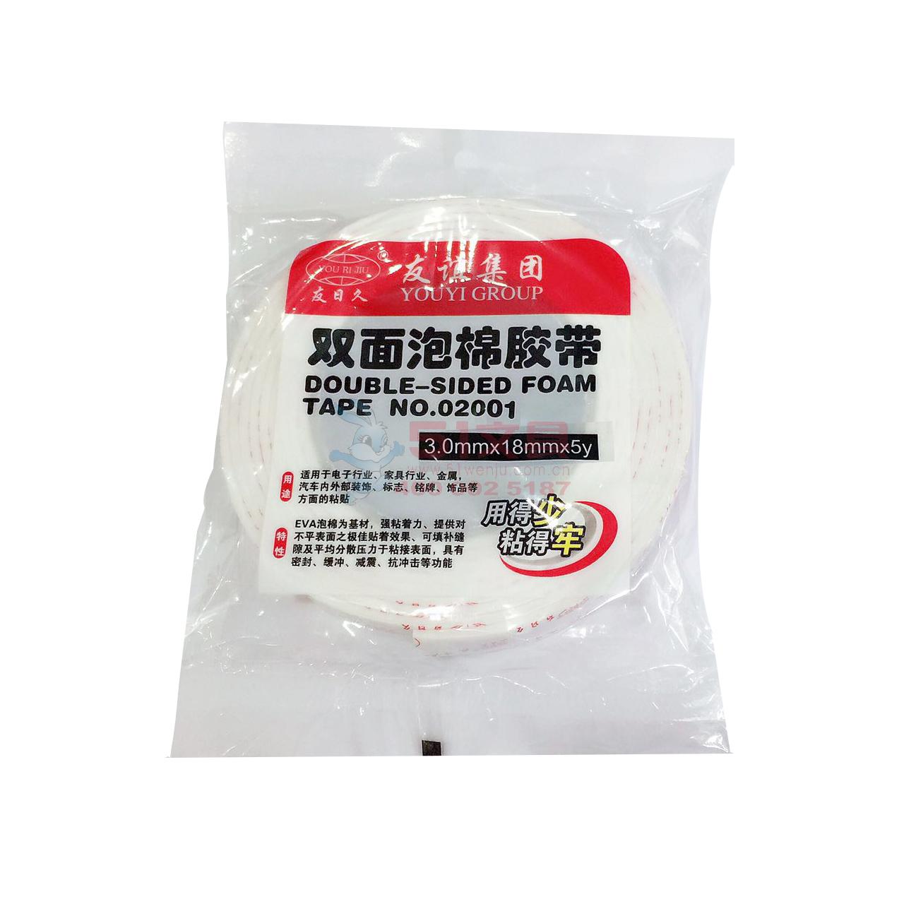 - 商品名称:友日久18mm*5Y 泡沫胶带(单卷装),海绵双面胶强力固定/粘墙双面胶/泡沫胶/泡棉双面胶带-友日久02001