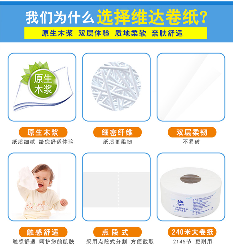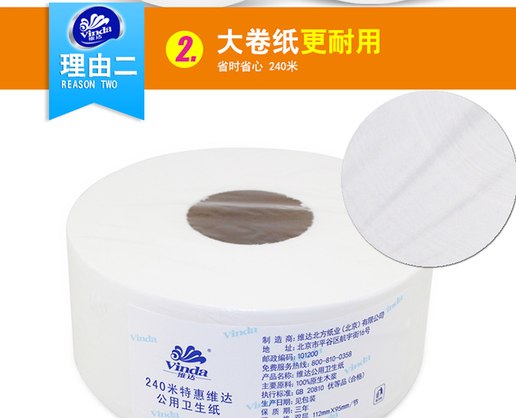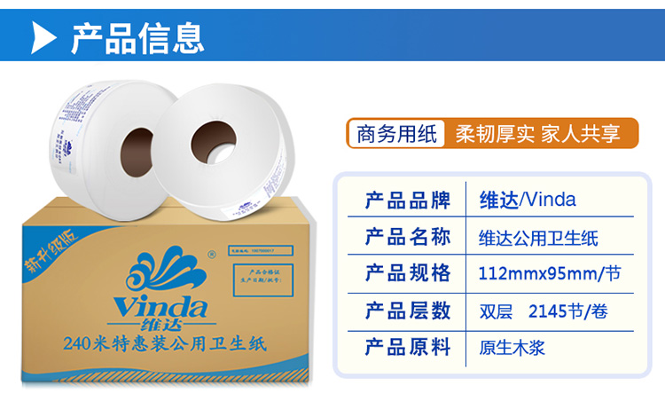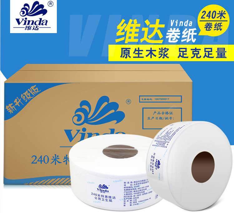 商品名称:维达VS4035,大盘纸(1/12)卷纸卫生纸公用2层大卷纸厕纸卷筒纸纸巾商用商务纸品240米x12卷/箱V4035 商品编号:89.01.01.4035 品牌:维达/Vinda 上架时间:2017-11-02 商品毛重:0克 价格单位:卷 包装含量:1/12 起订量:卷 纸质:木浆 如果您发现商品信息不准确,欢迎纠错;如果您发现有比51文具价格更低的,欢迎举报