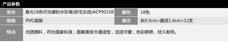 商品属性 [颜色数] 18色 [包装含量] 1/36/108 [价格单位] 盒