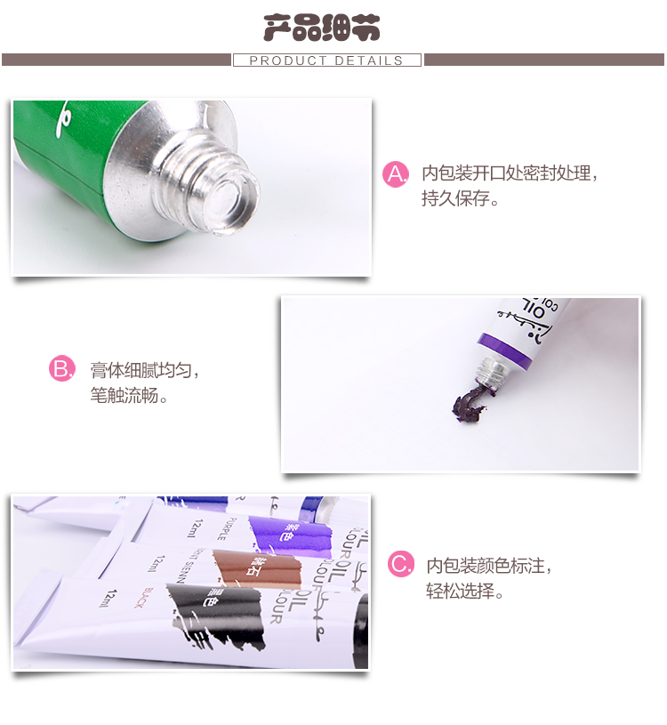 商品名称:晨光LPL97613,12色油画颜料 商品编号:61.06.11.97613 品牌:晨光/M&G 上架时间:2017-12-11 商品毛重:0克 颜色数:12色 包装含量:1/12/72 价格单位:盒 如果您发现商品信息不准确,欢迎纠错;如果您发现有比51文具价格更低的,欢迎举报