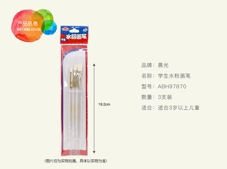 商品名称:晨光ABH97870 ,水粉画笔/2#4#6#美术绘画刷/画刷画笔3支装 商品编号:61.06.12.97870 品牌:晨光/M&G 上架时间:2017-12-11 商品毛重:0克 如果您发现商品信息不准确,欢迎纠错;如果您发现有比51文具价格更低的,欢迎举报