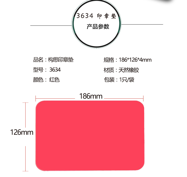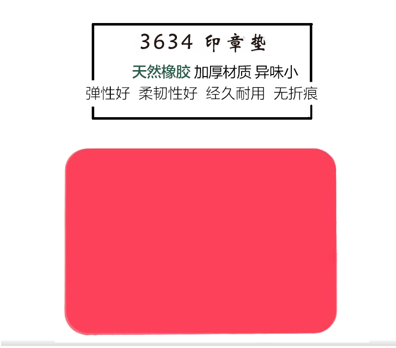 商品名称:构思3634,0.4厘米方形红色印章垫(186*126*4mm)胶皮圆形软塑胶盖章用橡胶垫子 商品编号:27.01.02.3634 品牌:构思 上架时间:2018-02-05 商品毛重:0克 如果您发现商品信息不准确,欢迎纠错;如果您发现有比51文具价格更低的,欢迎举报