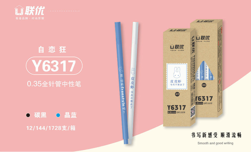 商品名称:联优6317,0.35mm全针管中性笔/牛皮纸盒(自恋狂) 商品编号:03.01.01.6317 品牌:联优 上架时间:2018-02-26 商品毛重:0克 价格单位:支 笔头类型:全针管 笔头粗细:0.35mm 包装含量:12/144/1728 如果您发现商品信息不准确,欢迎纠错;如果您发现有比51文具价格更低的,欢迎举报