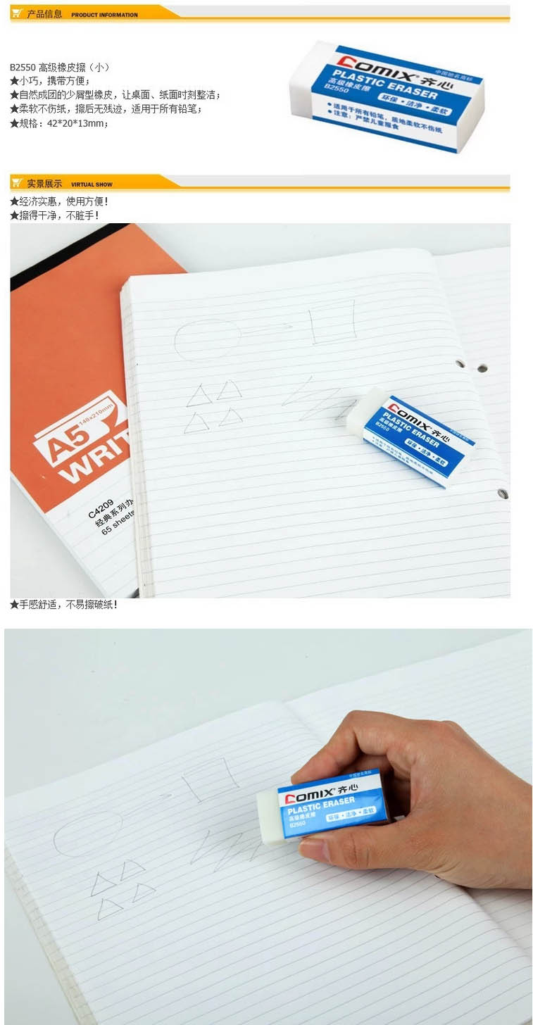 - 商品名称:齐心B2550,小号橡皮擦(爆款一口价),超净无屑超好用橡皮