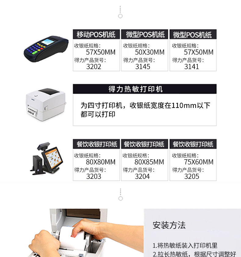 - 商品名称:得力3145,57*30热敏收银纸,小票打印纸 57*30mm 6.5m/卷