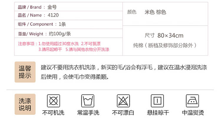 商品名称:金号毛巾4120,80*34cm纯棉毛巾/全棉洗脸运动面巾/柔软吸水面巾100g左右/条 商品编号:ECS008810 品牌:金号毛巾 上架时间:2018-04-14 商品毛重:0克 如果您发现商品信息不准确,欢迎纠错;如果您发现有比51文具价格更低的,欢迎举报