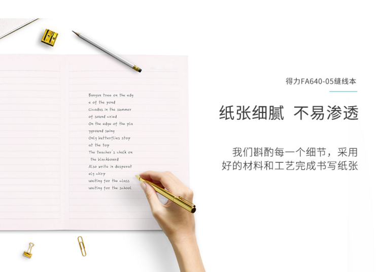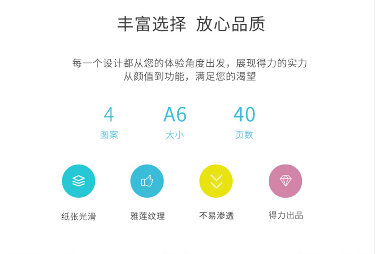 商品名称:得力笔记本FA640, A6 40时尚软抄本软面抄记事本 商品编号:11.01.02.2104 品牌:得力/deli 上架时间:2018-06-01 商品毛重:0克 产品类型:缝线本 规格:A6 页数:40 含量:1/12/360 如果您发现商品信息不准确,欢迎纠错;如果您发现有比51文具价格更低的,欢迎举报