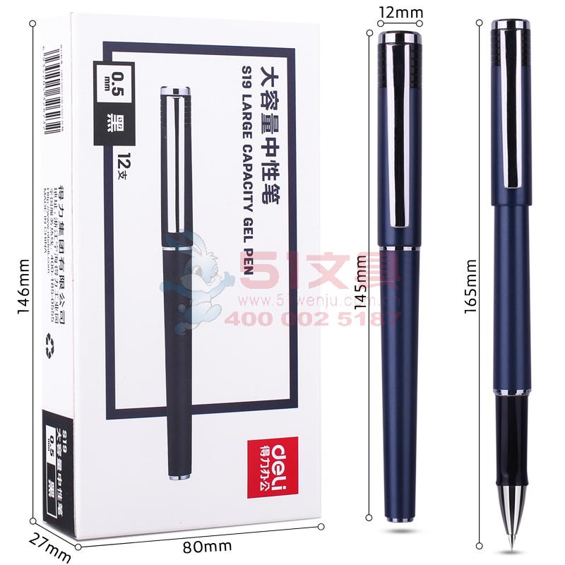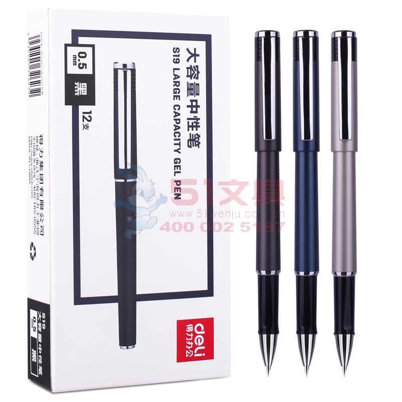 商品名称:得力S19,0.5mm办公中性笔子弹头签字笔水笔学生文具笔黑色 商品编号:11.03.01.0019A 品牌:得力/deli 上架时间:2018-06-22 商品毛重:0克 价格单位:支 笔头类型:子弹头 笔头粗细:0.5mm 包装含量:12/144/1728 如果您发现商品信息不准确,欢迎纠错;如果您发现有比51文具价格更低的,欢迎举报