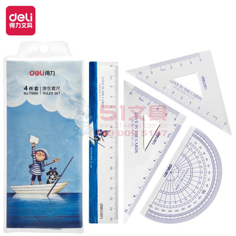 商品名称:得力71986,15cm学生套尺/几米系列塑料直尺三角尺量角器套装四件套尺 商品编号:11.11.04.71986 品牌:得力/deli 上架时间:2018-06-27 商品毛重:0克 如果您发现商品信息不准确,欢迎纠错;如果您发现有比51文具价格更低的,欢迎举报