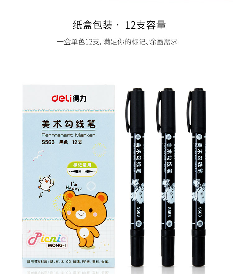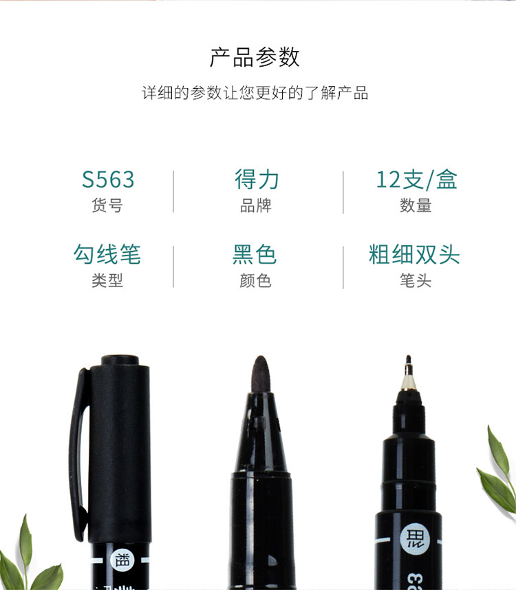 商品名称:得力S563,美术勾线笔 商品编号:11.03.11.0563 品牌:得力/deli 上架时间:2018-07-03 商品毛重:0克 如果您发现商品信息不准确,欢迎纠错;如果您发现有比51文具价格更低的,欢迎举报
