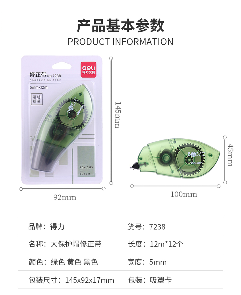 商品名称:得力7238,12m*5mm大保护帽修正带涂改带学生改正带大容量12米 商品编号:11.13.03.7238 品牌:得力/deli 上架时间:2018-07-10 商品毛重:0克 如果您发现商品信息不准确,欢迎纠错;如果您发现有比51文具价格更低的,欢迎举报