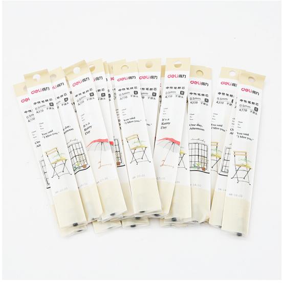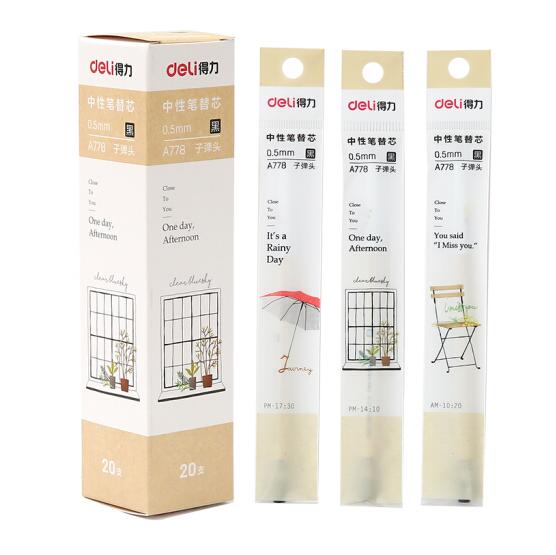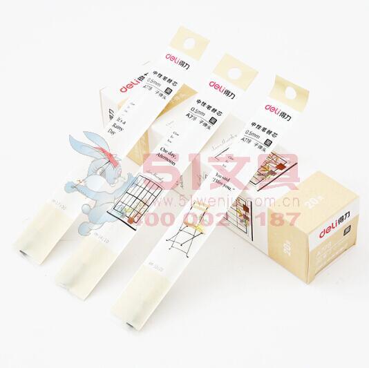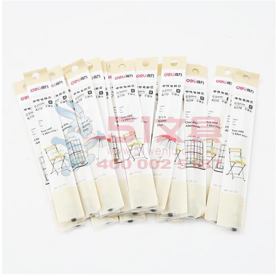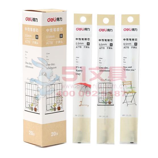 商品名称:得力A778,学生中性笔芯替芯水笔芯签字笔芯-0.5mm子弹头(黑) 商品编号:11.03.09.0778 品牌:得力/deli 上架时间:2018-07-12 商品毛重:0克 价格单位:支 笔头类型:子弹头 笔头粗细:0.5mm 包装含量:20/240/2880 如果您发现商品信息不准确,欢迎纠错;如果您发现有比51文具价格更低的,欢迎举报