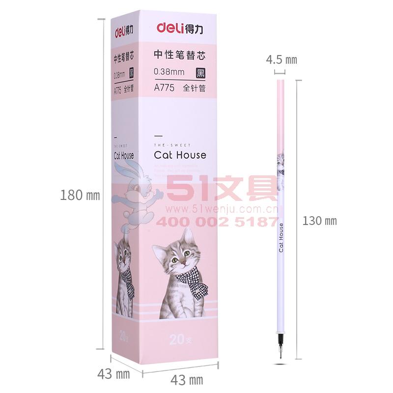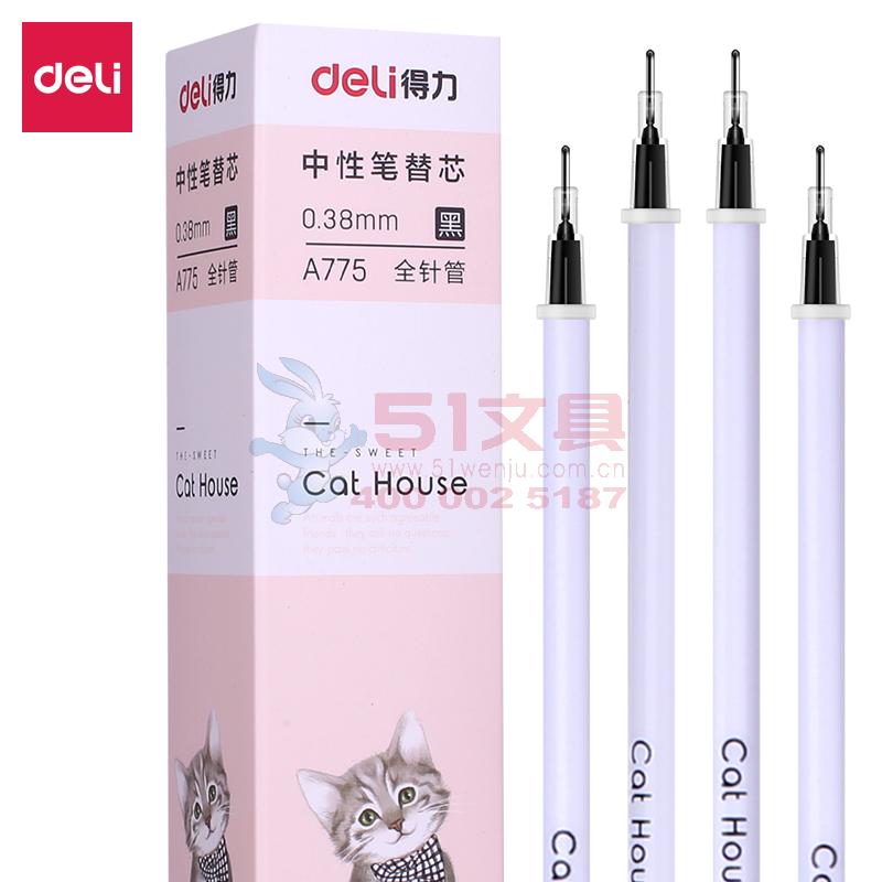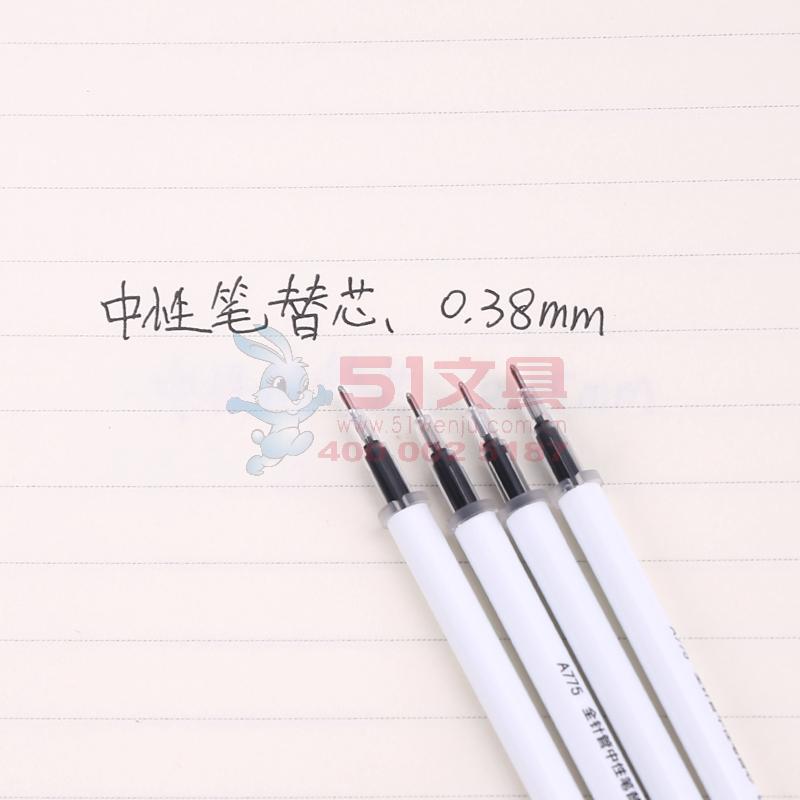 商品名称:得力A775, 学生中性笔芯替芯水笔芯签字笔芯-0.38mm全针管(黑) 商品编号:11.03.09.0775 品牌:得力/deli 上架时间:2018-07-12 商品毛重:0克 价格单位:支 笔头类型:全针管 笔头粗细:0.38mm 包装含量:20/240/2880 如果您发现商品信息不准确,欢迎纠错;如果您发现有比51文具价格更低的,欢迎举报