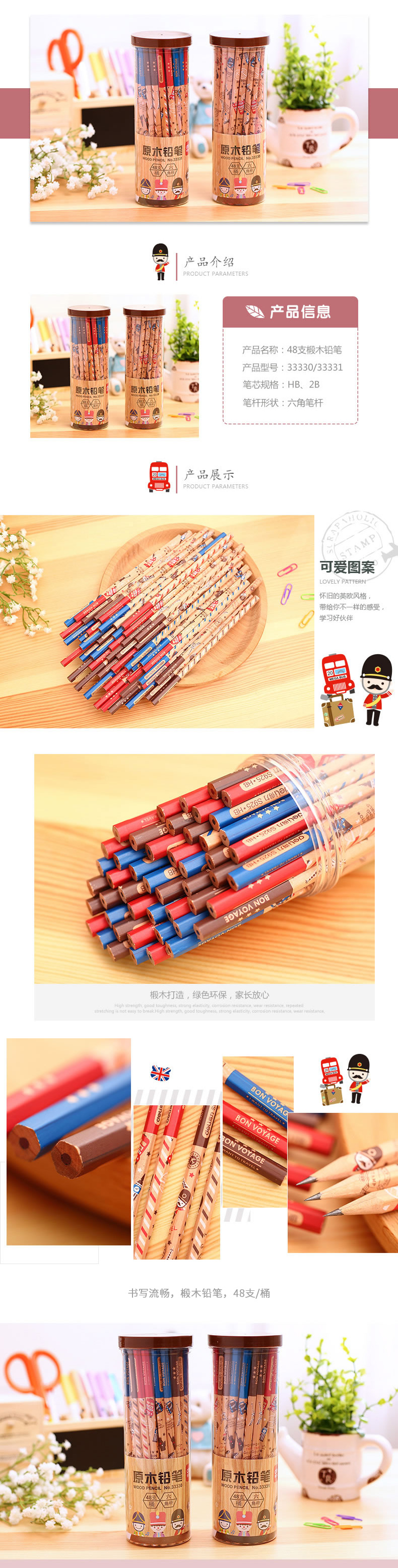 商品名称:得力33330,椴木印花六角铅笔 HB铅笔 小学生文具儿童写字铅笔 48支/桶 商品编号:11.03.03.33330 品牌:得力/deli 上架时间:2018-07-21 商品毛重:0克 如果您发现商品信息不准确,欢迎纠错;如果您发现有比51文具价格更低的,欢迎举报
