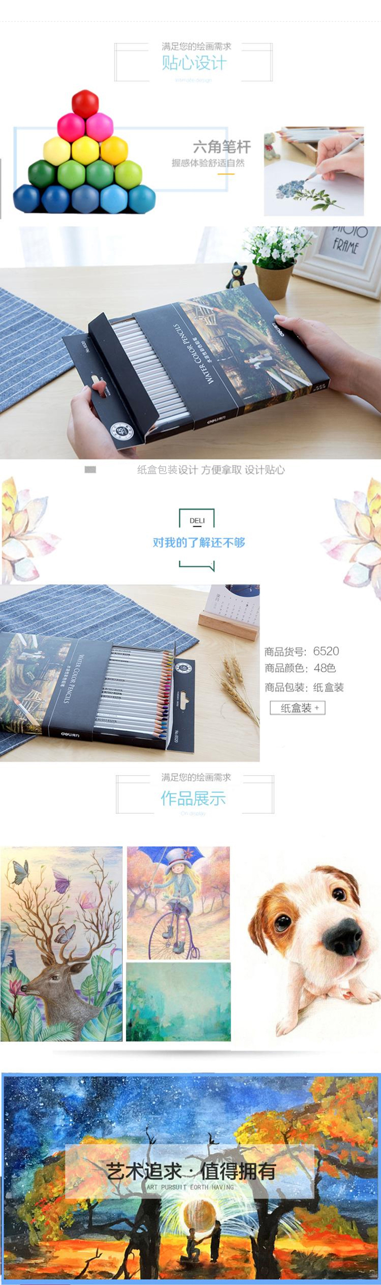 商品名称:得力6520,48色系列彩铅彩笔绘画铅笔水彩笔学生用品彩色铅笔手绘铅笔涂填色笔 商品编号:11.05.03.6520 品牌:得力/deli 上架时间:2018-08-08 商品毛重:0克 颜色数:48色 包装含量:1/18/36 如果您发现商品信息不准确,欢迎纠错;如果您发现有比51文具价格更低的,欢迎举报