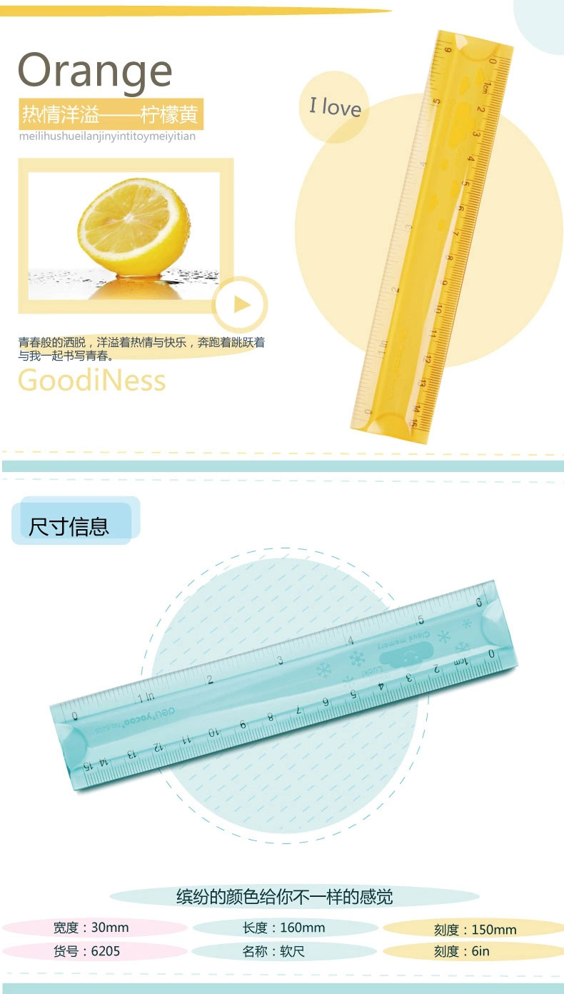 商品名称:得力6205,15cm软直尺(1/36/864)任意弯曲直尺波普风尚尺子学生糖果色文具软尺绘图 商品编号:11.11.04.6205 品牌:得力/deli 上架时间:2018-08-08 商品毛重:0克 如果您发现商品信息不准确,欢迎纠错;如果您发现有比51文具价格更低的,欢迎举报