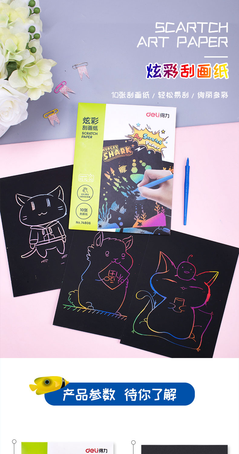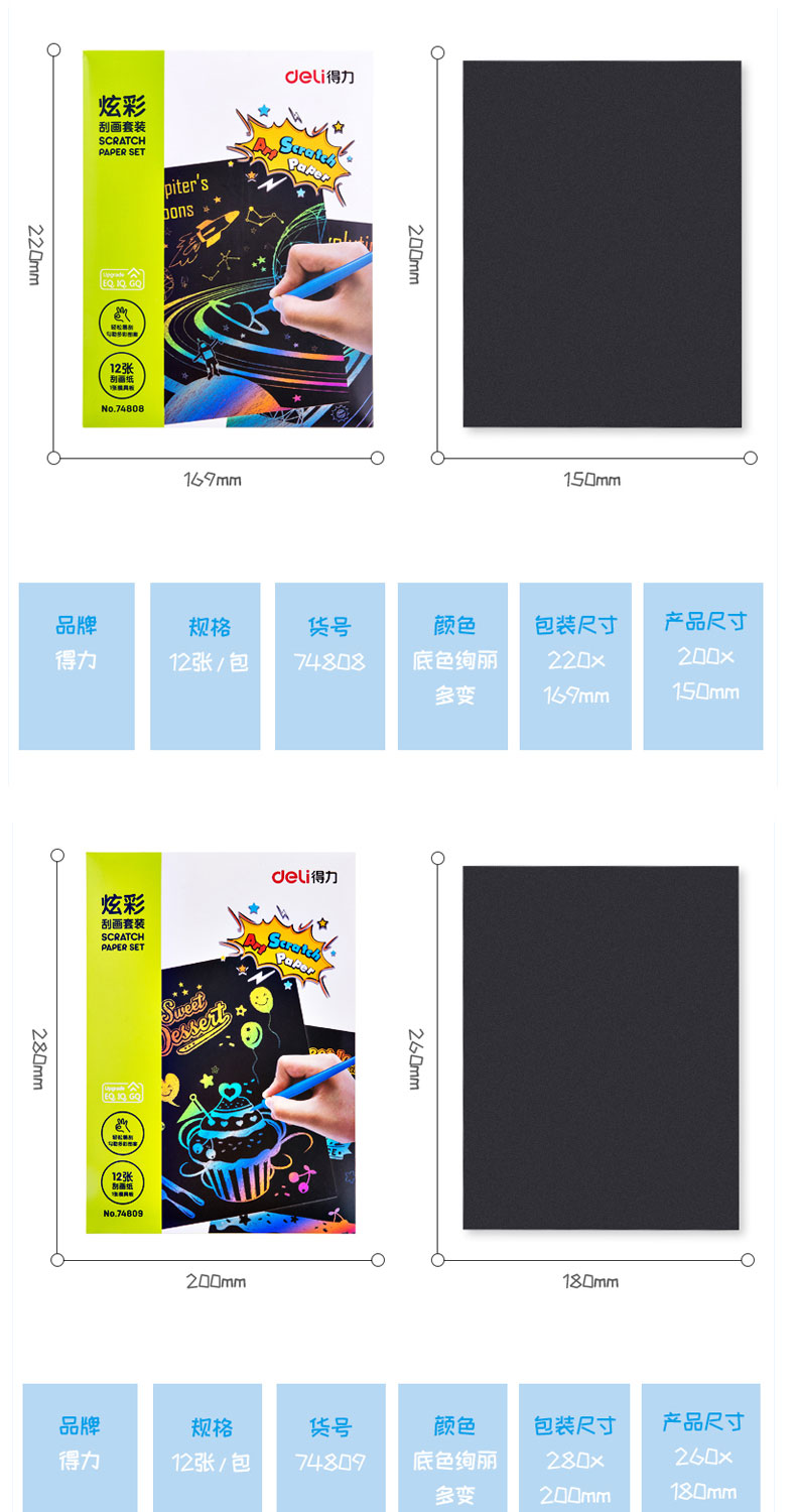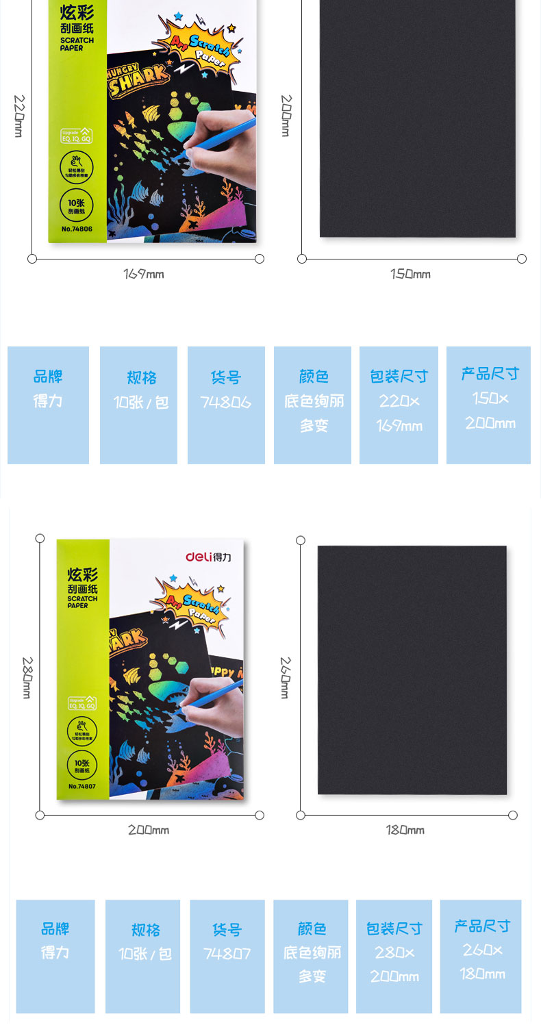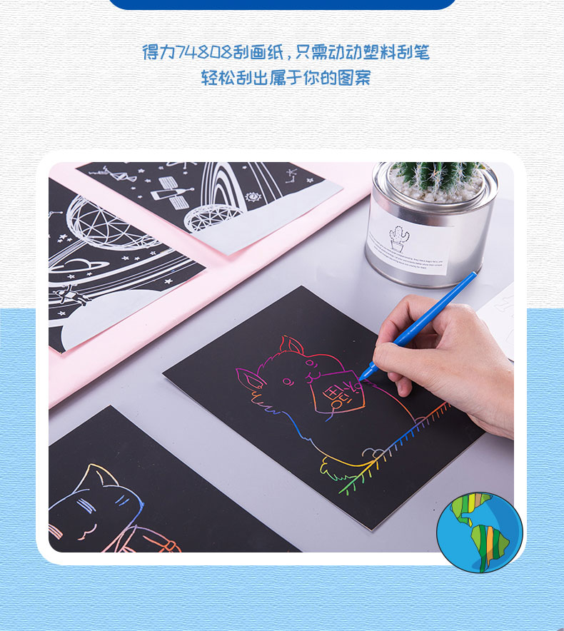 商品名称:得力74808,系列炫彩刮画纸DIY手工制作创意彩色绘图本150*200mm 12张 商品编号:11.01.12.74808 品牌:得力/deli 上架时间:2018-08-22 商品毛重:0克 规格:150*200mm 页数:12 含量:1/48/96 如果您发现商品信息不准确,欢迎纠错;如果您发现有比51文具价格更低的,欢迎举报