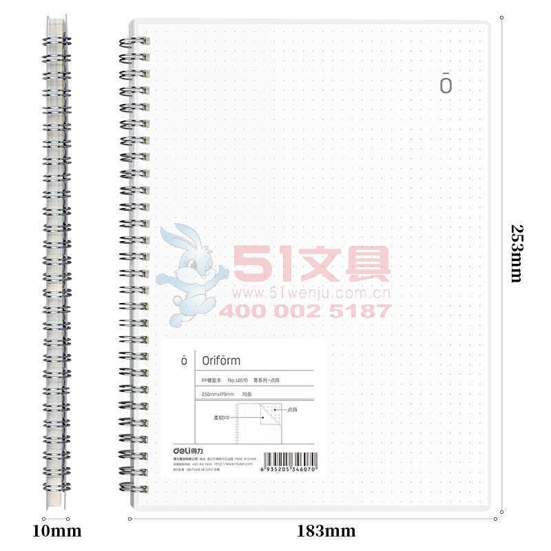 商品名称:得力LB570,B5 70页零系列螺旋本软抄本 点阵款记事本笔记本子 方格本 商品编号:11.01.04.1107 品牌:得力/deli 上架时间:2018-08-22 商品毛重:0克 包装含量:1/36/72 如果您发现商品信息不准确,欢迎纠错;如果您发现有比51文具价格更低的,欢迎举报