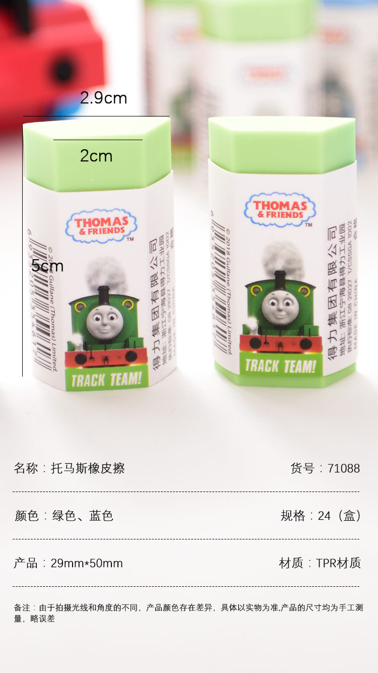 商品名称:得力71088,托马斯橡皮擦(1/24/864)学生用彩色卡通橡皮擦得干净TPR材质 商品编号:11.13.01.71088 品牌:得力/deli 上架时间:2018-09-05 商品毛重:0克 如果您发现商品信息不准确,欢迎纠错;如果您发现有比51文具价格更低的,欢迎举报