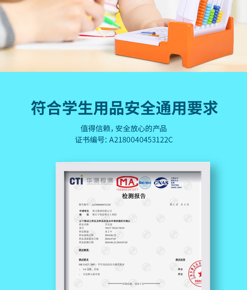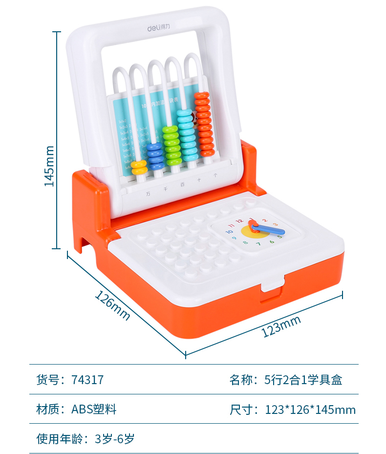 商品名称:得力74317,5行2合1计数器和学具盒 商品编号:11.11.08.74317 品牌:得力/deli 上架时间:2018-09-06 商品毛重:0克 如果您发现商品信息不准确,欢迎纠错;如果您发现有比51文具价格更低的,欢迎举报