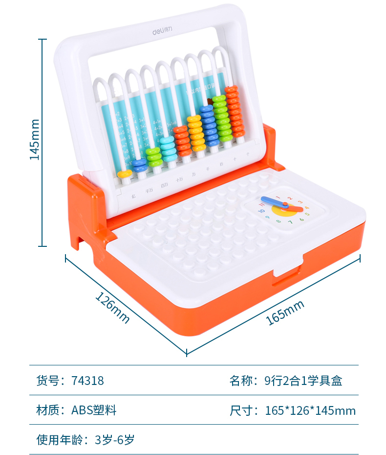 商品名称:得力74318,9行2合1计数器和学具盒 商品编号:11.11.08.74318 品牌:得力/deli 上架时间:2018-09-06 商品毛重:0克 如果您发现商品信息不准确,欢迎纠错;如果您发现有比51文具价格更低的,欢迎举报