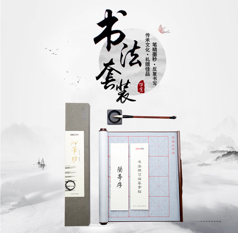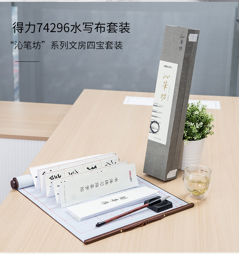 商品名称:得力74296,沁笔坊系列文房四宝套装毛笔水写布水碟临摹字帖 商品编号:11.03.31.74296 品牌:得力/deli 上架时间:2018-09-15 商品毛重:0克 如果您发现商品信息不准确,欢迎纠错;如果您发现有比51文具价格更低的,欢迎举报