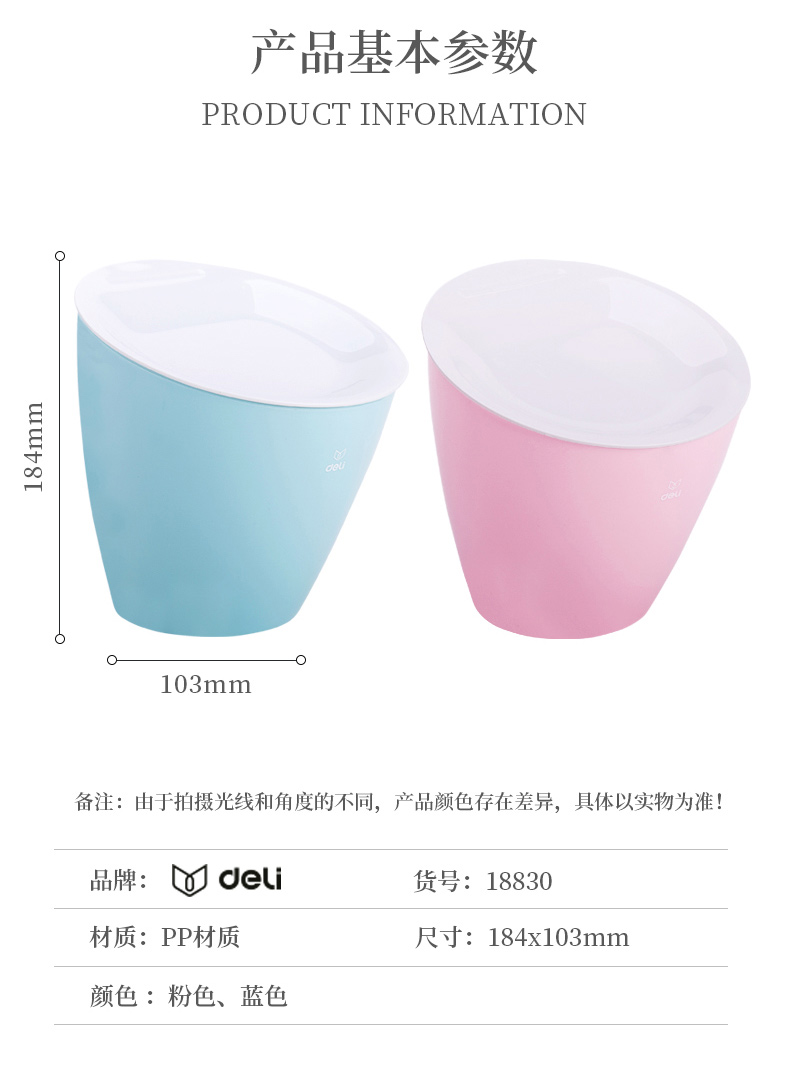 商品名称:得力18830,桌面垃圾桶 塑料废纸篓创意多功能清洁桶办公家用收纳桶 商品编号:12.08.01.18830 品牌:得力/deli 上架时间:2018-10-08 商品毛重:0克 如果您发现商品信息不准确,欢迎纠错;如果您发现有比51文具价格更低的,欢迎举报