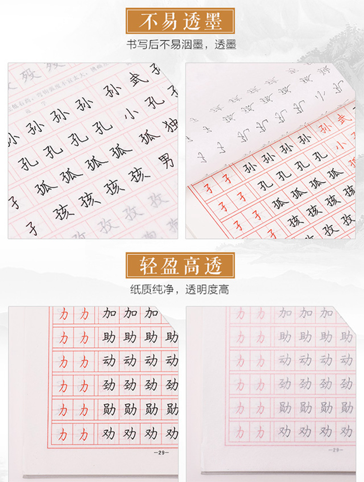 商品名称:中小学生钢笔字帖(1/100/400)练习双面书写临摹字帖 描红硬笔楷书字帖 商品编号:81.11.21.0101 品牌:其他 上架时间:2018-10-14 商品毛重:0克 包装含量:1/100/400 如果您发现商品信息不准确,欢迎纠错;如果您发现有比51文具价格更低的,欢迎举报