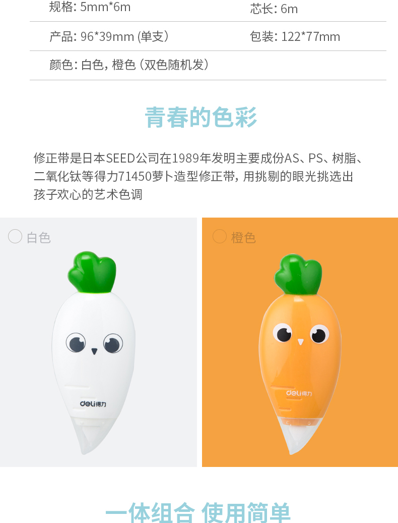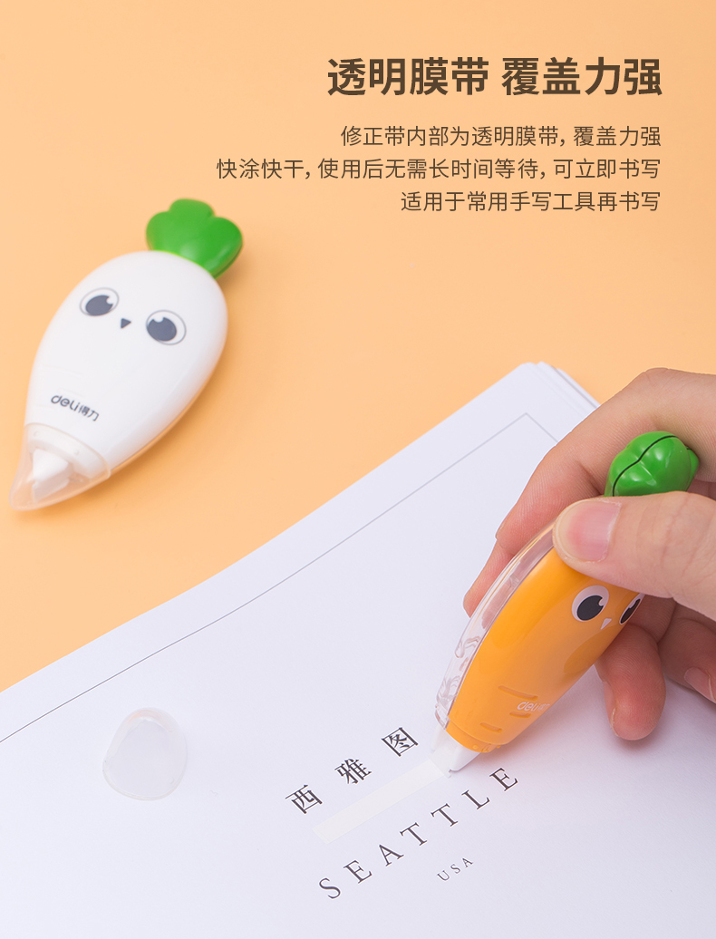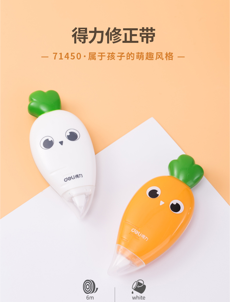 商品名称:得力71450,5mm*6mm修正带涂改带改正带(1/12/432)大容量小学生用可爱创意修改带 商品编号:11.13.03.71450 品牌:得力/deli 上架时间:2018-11-09 商品毛重:0克 如果您发现商品信息不准确,欢迎纠错;如果您发现有比51文具价格更低的,欢迎举报