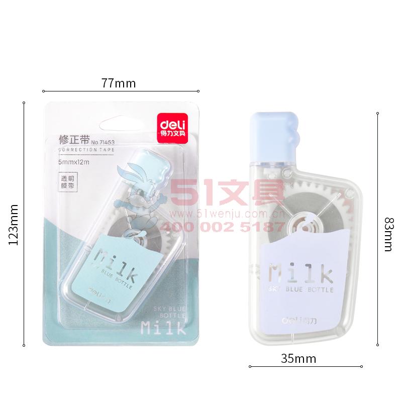 商品名称:得力71453,5mm*12m修正带小学生可爱创意大容量书写错字改正涂改带(1/12/288) 商品编号:11.13.03.71453 品牌:得力/deli 上架时间:2018-11-09 商品毛重:0克 如果您发现商品信息不准确,欢迎纠错;如果您发现有比51文具价格更低的,欢迎举报