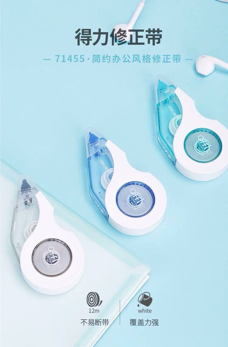 商品名称:得力71455,5mm*12m修正带简约风格设计涂改带(1/12/288)覆盖能力好改正带 商品编号:11.13.03.71455 品牌:得力/deli 上架时间:2018-11-09 商品毛重:0克 如果您发现商品信息不准确,欢迎纠错;如果您发现有比51文具价格更低的,欢迎举报