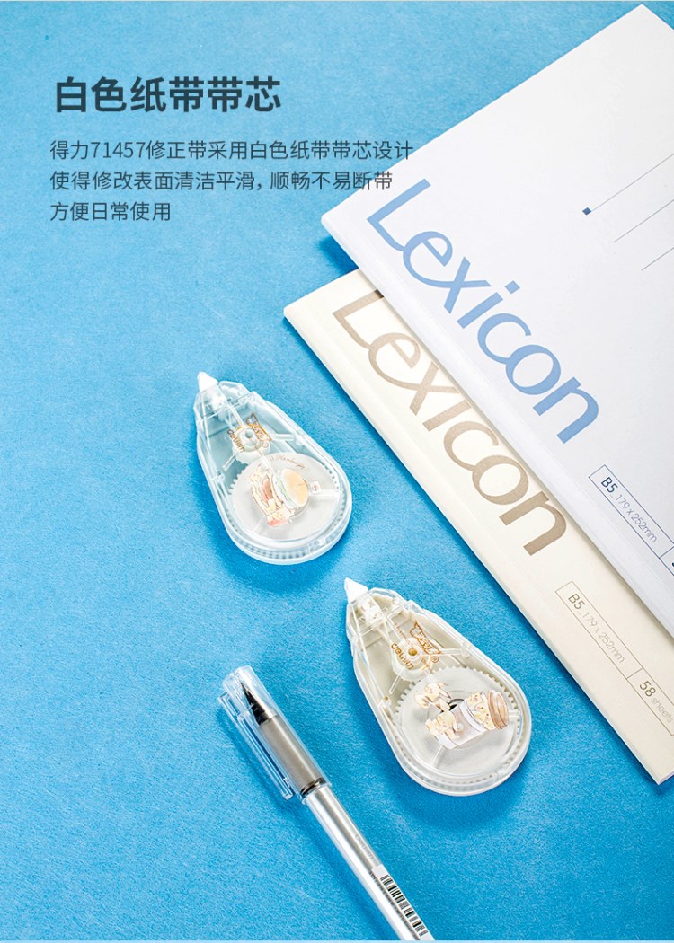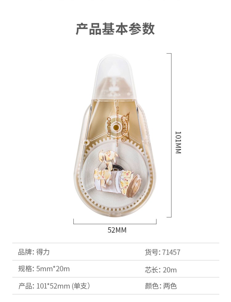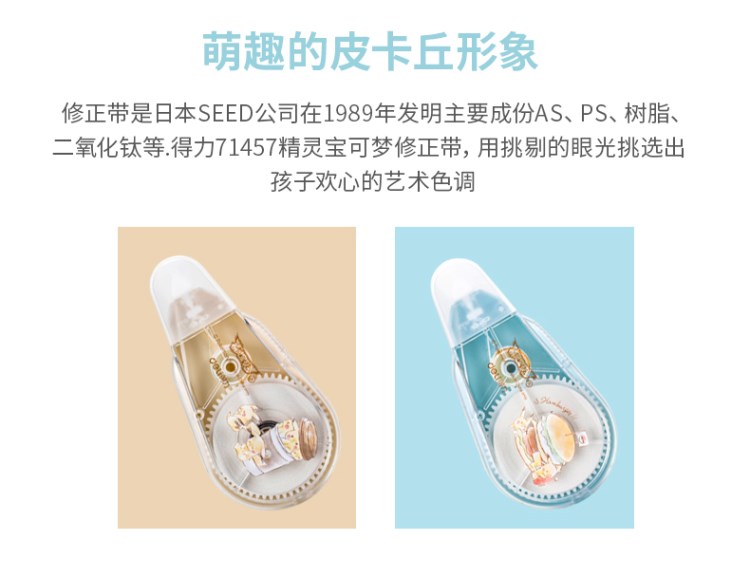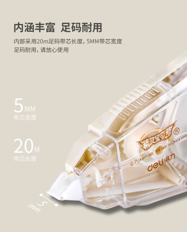 商品名称:得力71457,5mm*20m皮卡丘主题修正带(1/12/288)改错带涂改带 商品编号:11.13.03.71457 品牌:得力/deli 上架时间:2018-11-09 商品毛重:0克 如果您发现商品信息不准确,欢迎纠错;如果您发现有比51文具价格更低的,欢迎举报