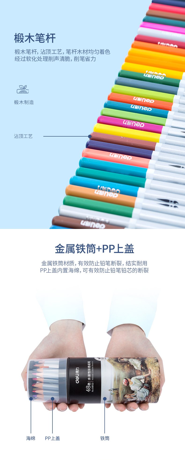 商品名称:得力68102,48色水溶性彩铅学生用彩色铅笔彩铅(1/12/48)手绘笔美术用品安全无铅毒 商品编号:11.05.03.68102 品牌:得力/deli 上架时间:2018-11-17 商品毛重:0克 颜色数:48色 包装含量:1/12/48 如果您发现商品信息不准确,欢迎纠错;如果您发现有比51文具价格更低的,欢迎举报