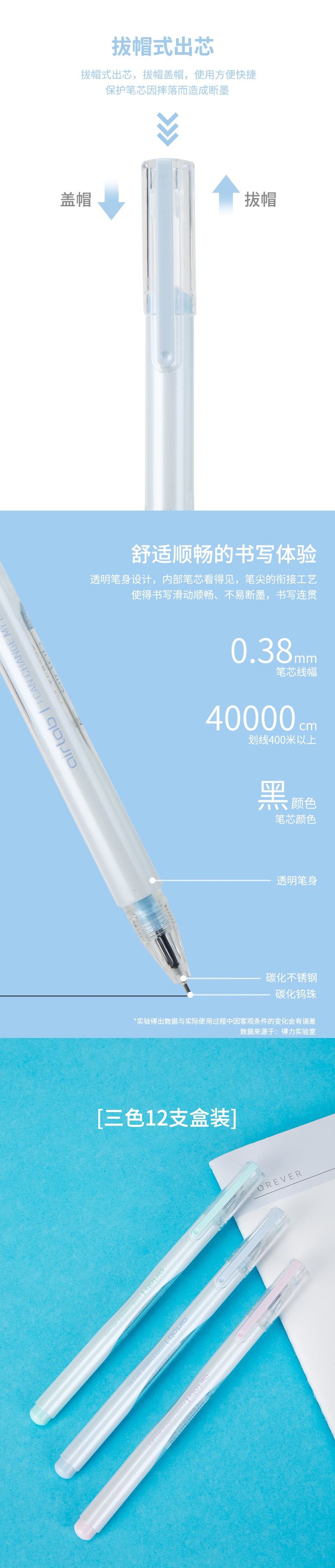 书写工具 [价格单位] 支 [笔头类型] 全针管 [笔头粗细] 0.38mm [包装含量] 12/144/1728