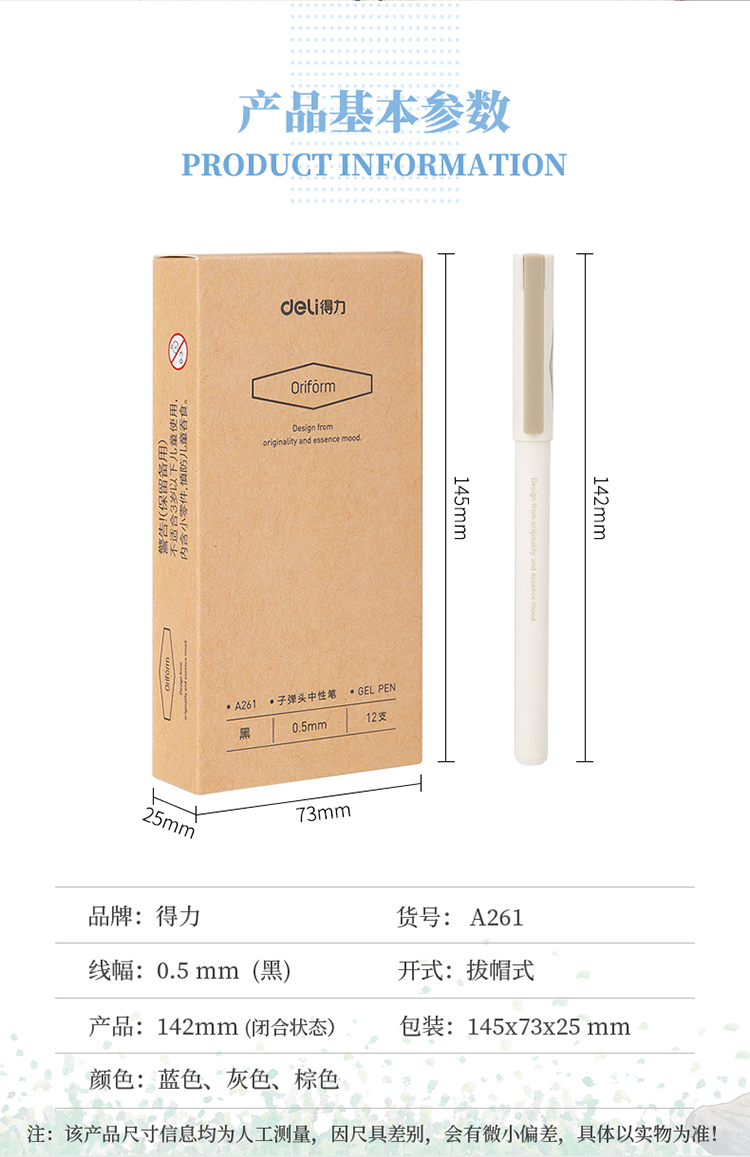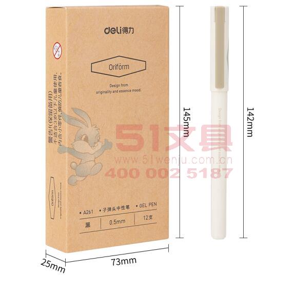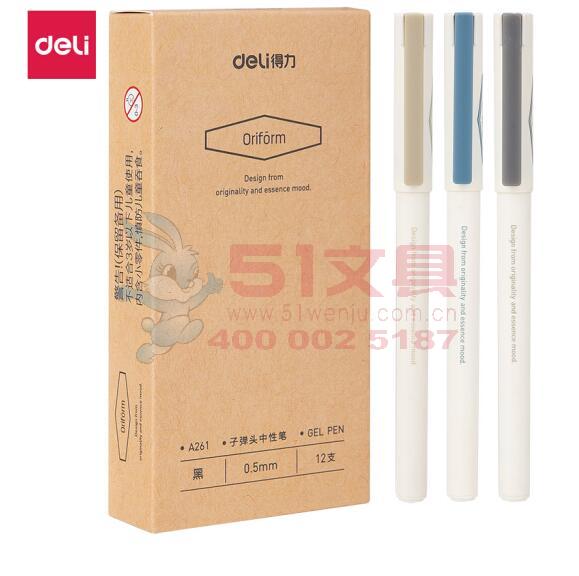 商品名称:得力A261,0.5mm零系列学生用书写子弹头中性笔(12/144/1728)签字笔办公碳素签字笔 商品编号:11.03.01.0261 品牌:得力/deli 上架时间:2018-12-05 商品毛重:0克 价格单位:支 笔头类型:子弹头 笔头粗细:0.5mm 包装含量:12/144/1728 如果您发现商品信息不准确,欢迎纠错;如果您发现有比51文具价格更低的,欢迎举报
