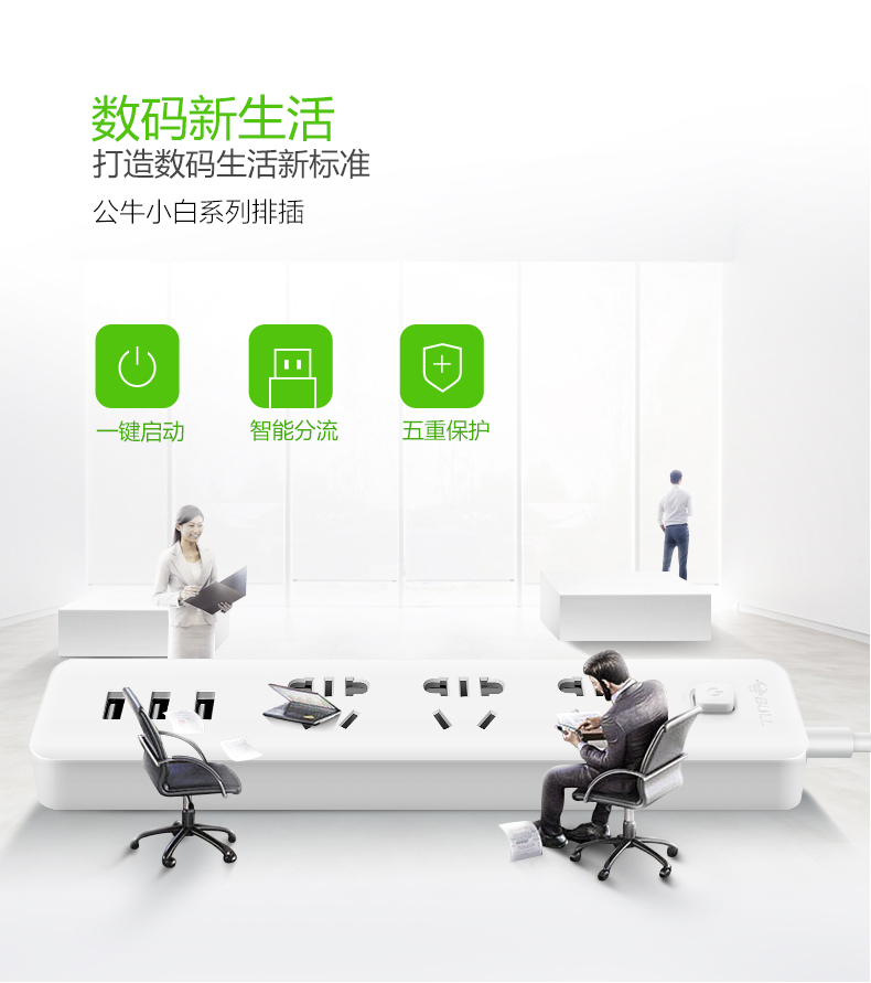 商品名称:公牛B403U,小白插座(1/60)GN B403U智能分流USB充电3.1A排插接线板插板插排 商品编号:85.53.01.0403U 品牌:公牛/BULL 上架时间:2018-12-11 商品毛重:0克 如果您发现商品信息不准确,欢迎纠错;如果您发现有比51文具价格更低的,欢迎举报