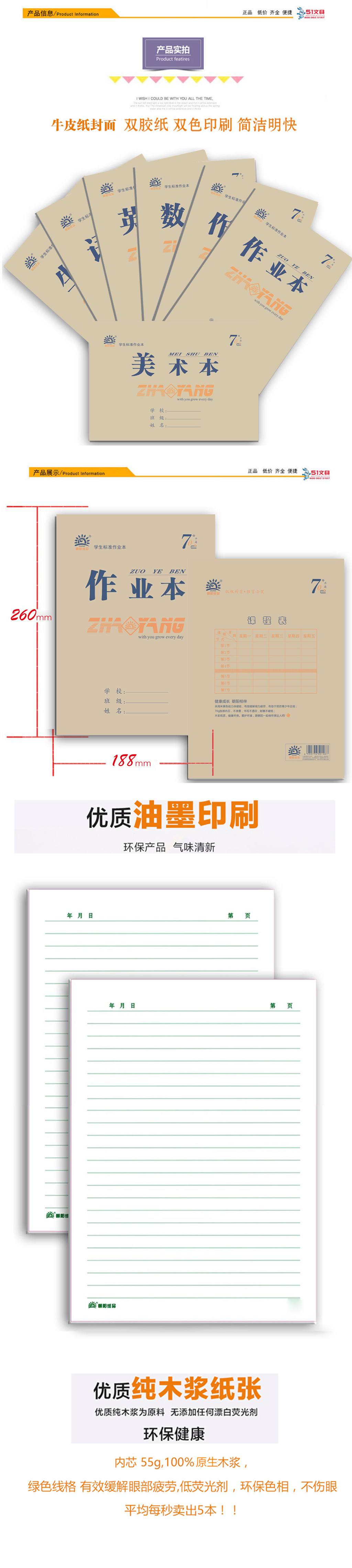 商品名称:朝阳16K40型,防近视单面作业本牛皮面单面作业本 商品编号:ECS011313 品牌:朝阳 上架时间:2018-12-21 商品毛重:0克 规格:16K 页数:30张 含量:1/10/260 如果您发现商品信息不准确,欢迎纠错;如果您发现有比51文具价格更低的,欢迎举报
