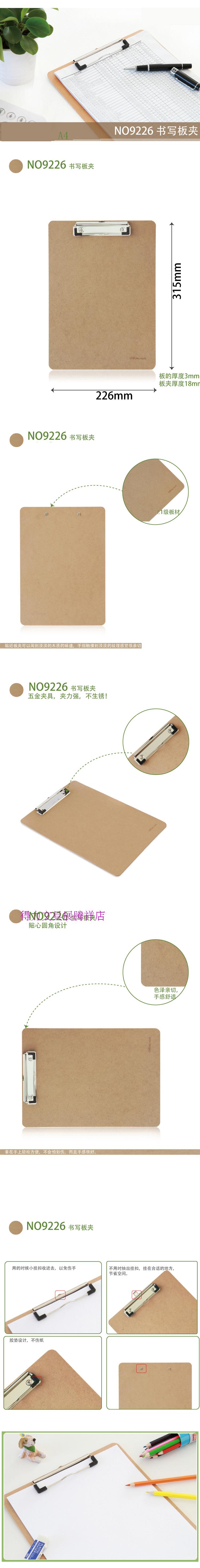 商品名称:得力9226,A4木板夹书写板夹(1/24/96)阅读架板夹 商品编号:11.02.03.9226 品牌:得力/deli 上架时间:2019-01-21 商品毛重:0克 如果您发现商品信息不准确,欢迎纠错;如果您发现有比51文具价格更低的,欢迎举报