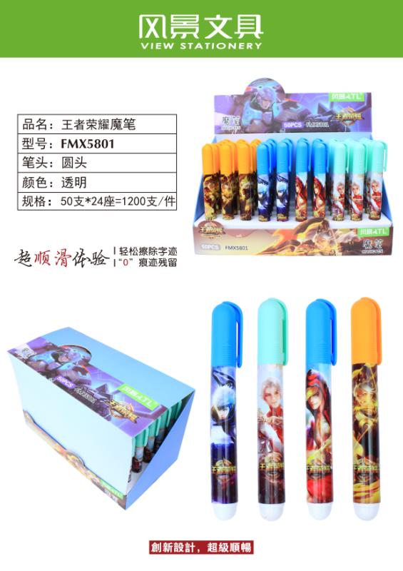 商品名称:风景5801,王者荣耀换囊囊水魔笔(1/50/1200),可擦墨水魔液 钢擦魔笔 商品编号:38.01.01.5801 品牌:风景 上架时间:2019-02-25 商品毛重:0克 如果您发现商品信息不准确,欢迎纠错;如果您发现有比51文具价格更低的,欢迎举报