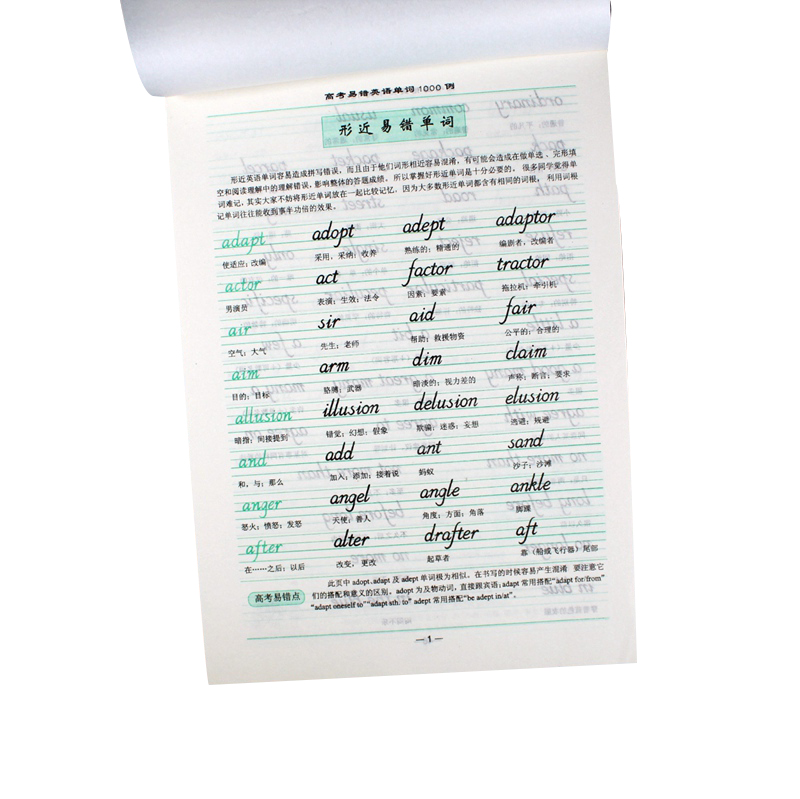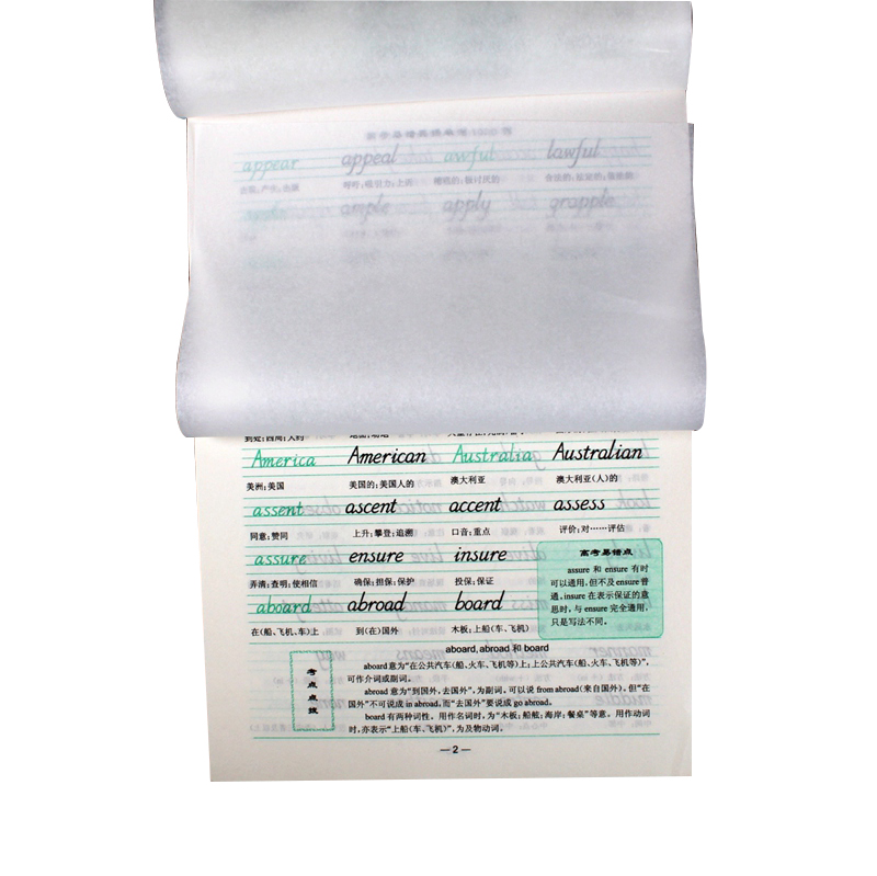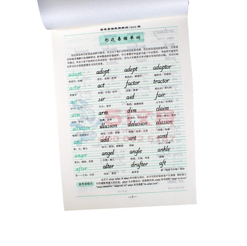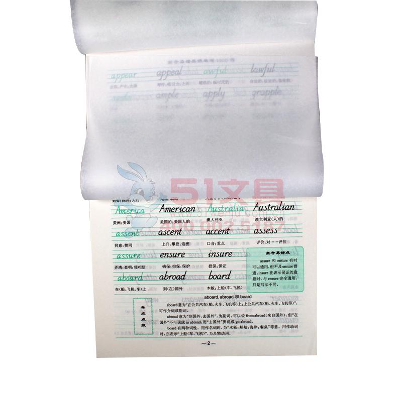 商品名称:中小学生英语字帖(1/100/400)高考易错英语单词1000例 钢笔英文字帖 高中生临摹英语练字帖 英语单词硬笔书法练习 商品编号:81.11.21.0202 品牌:其他 上架时间:2019-03-01 商品毛重:0克 如果您发现商品信息不准确,欢迎纠错;如果您发现有比51文具价格更低的,欢迎举报