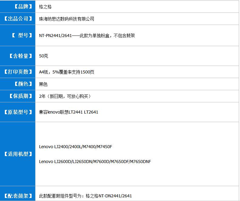 商品名称:格之格 适用联想M7400硒鼓 LD2441鼓架 LJ2400L M7650df M7450F M3420 M3410粉盒 激光打印机硒鼓 商品编号:86.05.01.2441A 品牌:格之格/G&G 上架时间:2019-03-18 商品毛重:0克 如果您发现商品信息不准确,欢迎纠错;如果您发现有比51文具价格更低的,欢迎举报