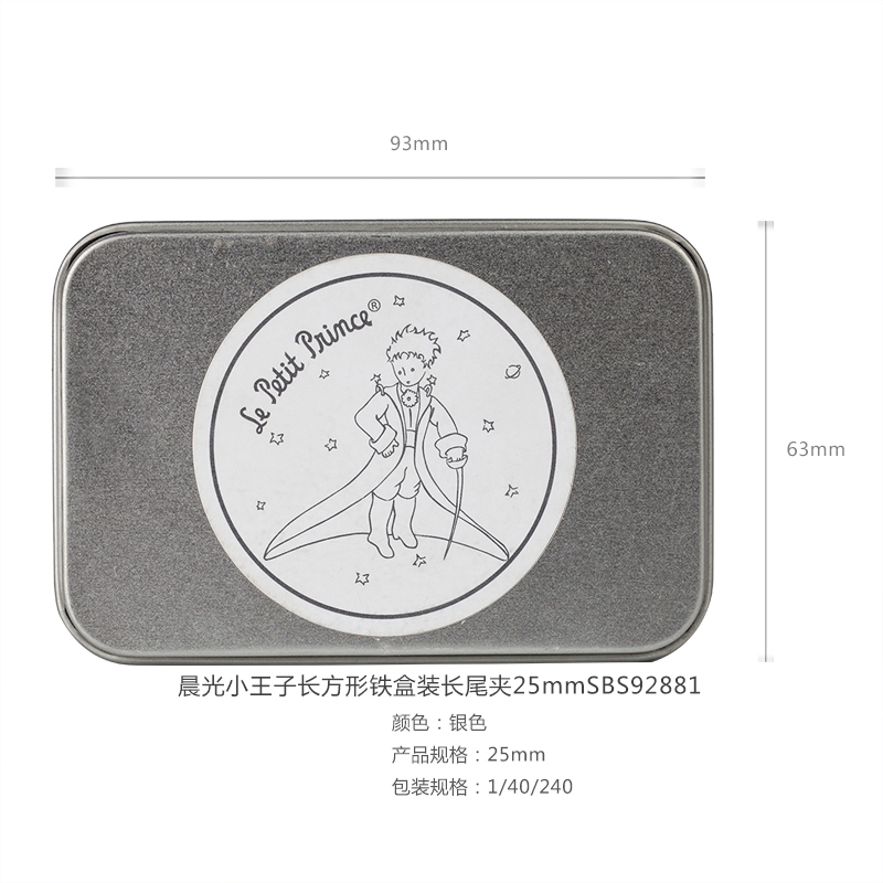 商品名称:晨光SBS92881,小王子长方形铁盒装长尾夹(1/40/240)25mm长尾夹 商品编号:16.02.03.92881 品牌:晨光/M&G 上架时间:2019-04-09 商品毛重:0克 如果您发现商品信息不准确,欢迎纠错;如果您发现有比51文具价格更低的,欢迎举报