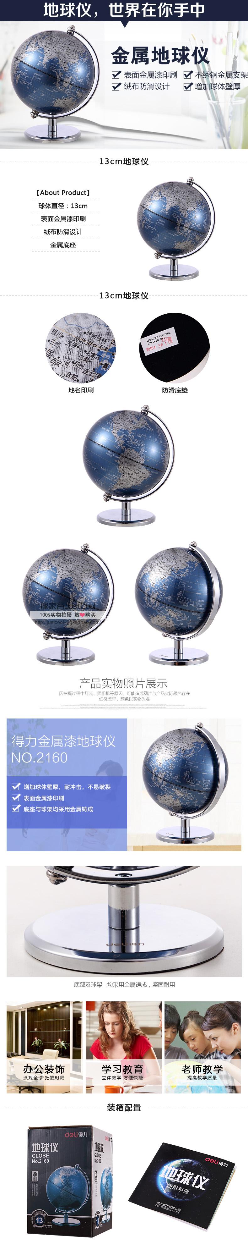 商品名称:得力2160,Ф13cm金属底座世界地球仪(1/24) 商务礼品居家摆设 商品编号:12.08.04.2160 品牌:文具/LZN 上架时间:2019-04-13 商品毛重:0克 如果您发现商品信息不准确,欢迎纠错;如果您发现有比51文具价格更低的,欢迎举报