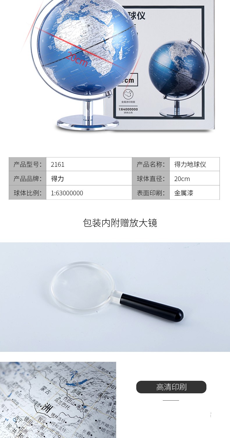 商品名称:得力2161,Ф20cm金属底座世界地球仪( 商务礼品居家摆设 带放大镜 2161地球仪 商品编号:12.08.04.2161 品牌:文具/LZN 上架时间:2019-04-13 商品毛重:0克 如果您发现商品信息不准确,欢迎纠错;如果您发现有比51文具价格更低的,欢迎举报