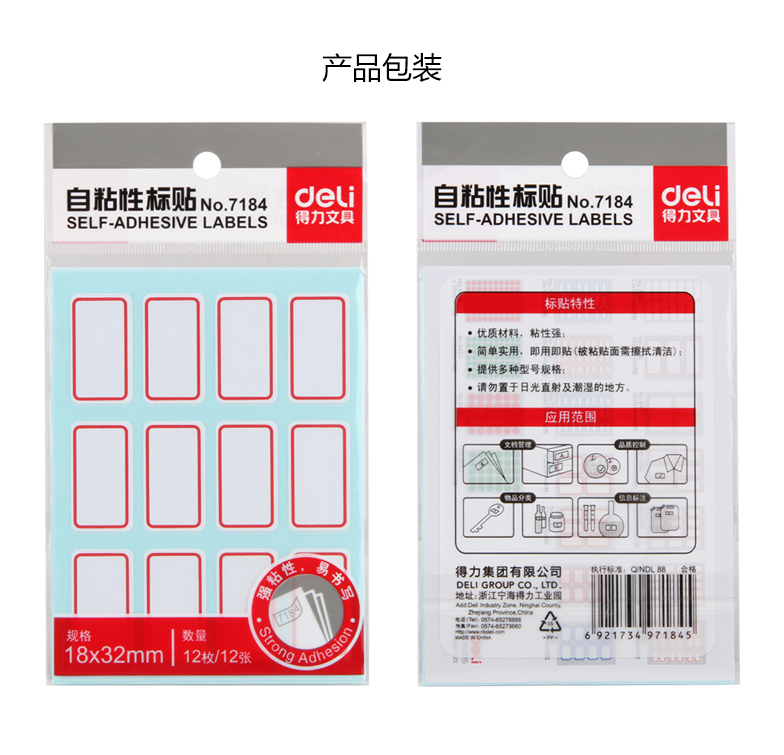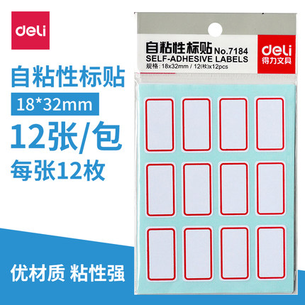 商品名称:得力7184,18×32mm标签贴(1/100/600)自粘性标签纸 口取纸 扣取纸 不干胶标签贴可书写标签纸-12张/包 商品编号:12.05.12.7184 品牌:文具/LZN 上架时间:2019-06-10 商品毛重:0克 如果您发现商品信息不准确,欢迎纠错;如果您发现有比51文具价格更低的,欢迎举报